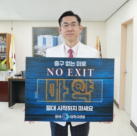 안희배 동아대병원장이 지난 14일 마약 예방 릴레이 챌린지 '출구 없는 미로(NO EXIT), 마약 절대 시작하지 마세요'에 참여했다.