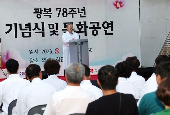 경남 밀양시는 15일 광복 78주년을 맞아 지난해 준공한 의열체험관 앞에서 경축행사를 개최했다.