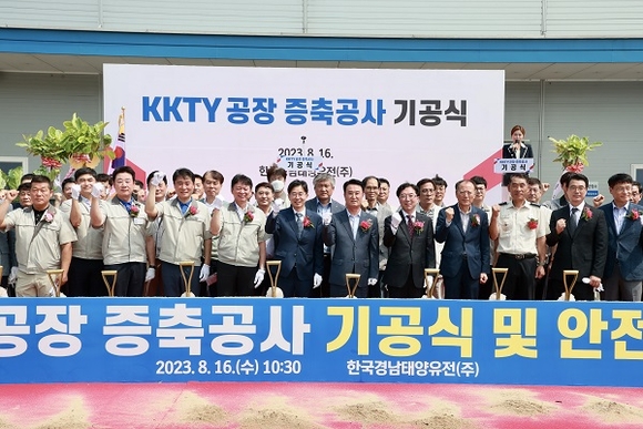 태양유전은 16일 김병규 경남도 경제부지사, 박동식 사천시장, 오츠카 츠요시 재부산 일본영상관 총영사 및 기업대표 등 60여명이 참석한 가운데 'KKTY 공장 증축공사 기공식'을 개최했다.