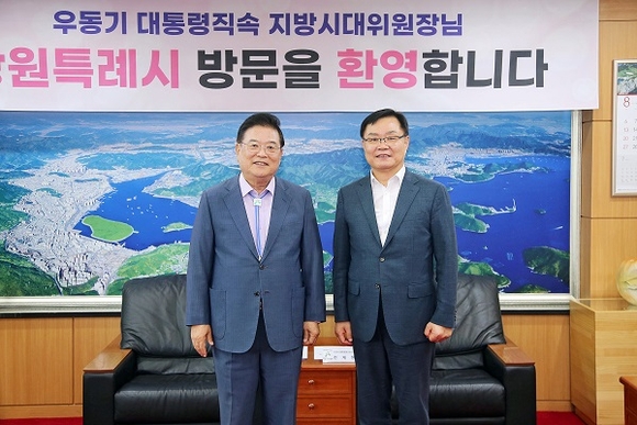 홍 시장은 특강에 앞서 우동기 지방시대위원장과 창원시의 주요 현안에 대해 논의하는 시간을 가졌다. 홍 시장은 기회발전특구 지정·공공기관 이전·특례시 재정특례 지원·교육자유특구 지정 등 지역 발전에 필수적인 현안을 건의했다.