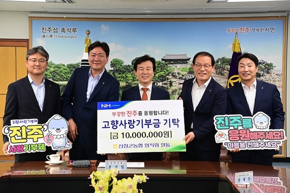 경남 진주시는 지난 17일 산청군농협과 진주서부농협 임직원 간 고향사랑 상호기부 행사를 통해 1000만 원의 고향사랑기부금을 기탁받았다고 밝혔다.