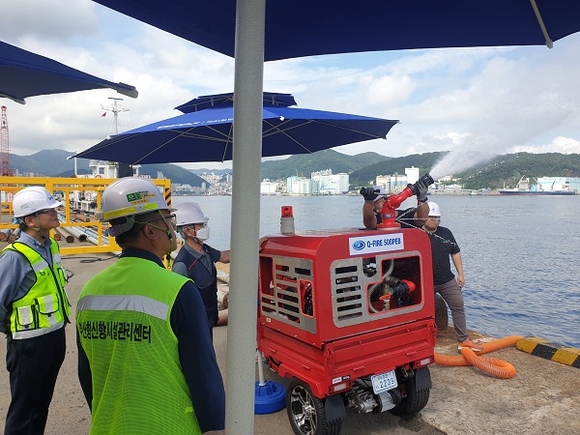 부산항만공사(BPA)가 18일 감천항 현장 일원에서 선박화재 대비 미니 소방차 운용 관련 실무자 교육훈련을 실시했다고 밝혔다.