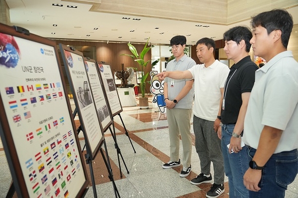 본점 1층 로비에 마련된 특별 사진전은 한국자유총연맹 경남도지부로부터 대여한 6.25 한국전쟁 및 북한의 국지도발 등이 담긴 사진 작품 27점으로 꾸며졌다.