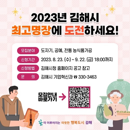 경남 김해시는 내달 22일까지 '2023년 김해시 최고명장' 후보자를 모집한다고 21일 밝혔다.