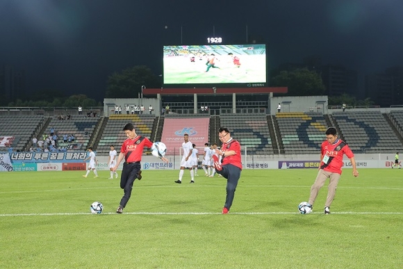 경남 창원시는 21일 저녁 창원축구센터에서 열린 '하나원큐 K리그2 2023' 경남FC 홈경기에 홍남표 시장이 시축에 나섰다고 밝혔다.