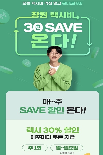 또한 창원통합콜 활성화를 위해 스마트폰에서 '티머니온다'를 다운 받아 회원 신규가입하면 자동결제 이용 시 택시요금 50% 할인쿠폰(최대 5천원) 지급하며, 기존 회원은 매주 1회 택시요금 30% 할인쿠폰(최대 3천원)을 지급한다.