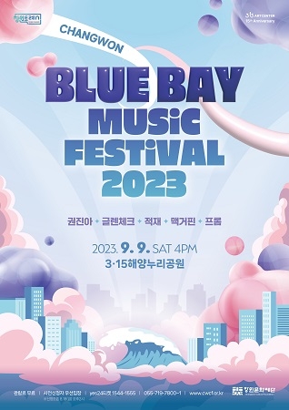 창원문화재단은 '2023 창원 블루베이 뮤직 페스티벌'을 오는 9월 9일 오후 4시 마산 서항지구 3·15해양누리공원 중앙무대에서 선보일 예정이다. 이번 공연은 창원특례시 출범 2주년과 창원문화재단 3·15아트센터 개관 15주년을 기념해 창원문화재단이 마련한 시민축제이다.