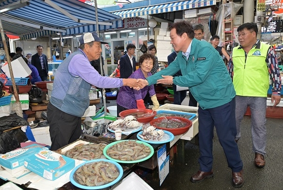 박완수 경남도지사는 25일 오후 일본 후쿠시마 방류 개시에 따라 수산물 소비 위축으로 어려움을 겪고 있는 상인들을 격려하기 위해 마산어시장을 방문했다.