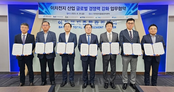 KTL은 경북테크노파크(이하 경북TP), 한국환경공단(이하 환경공단), 한국기계전기전자시험연구원(이하 KTC), 한국화학융합시험연구원(이하 KTR), 한국건설생활환경시험연구원(이하 KCL), FITI시험연구원(이하 FITI)과 함께 '이차전지 산업 글로벌 경쟁력 강화 업무협약'을 체결했다고 28일 밝혔다.