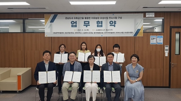 협약기관은 이번 협약을 통해 ▲경남형 치유농업 및 치유농장 조성에 대한 상호 정보교류 및 기술·경영자문, 공동연구, 인력교류 ▲치유 작물·도시 양봉 관련 프로그램 및 체험키트 제작 개발지원 ▲자활사업 및 사회적기업의 발전을 위한 컨설팅과 멘토링 수행지원 등에 대해 상호 협력키로 했다.