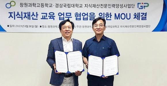경상국립대학교 지식재산전문인력양성사업단(이하 IP사업단)과 창원과학고등학교는 지난 28일 오후 창원과학고등학교에서 창의 과학·발명 인재 양성 등 지식 재산(IP) 교육 관련 협업을 통해 양 기관의 발전적 성장을 도모하기 위해 업무협약을 체결했다.