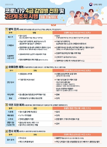 부산시가 오는 31일부터 코로나19 감염병 등급이 2급에서 4급으로 하향됨에 따라 고위험군 보호 중심의 방역・의료 대응체계로 전환한다고 밝혔다.