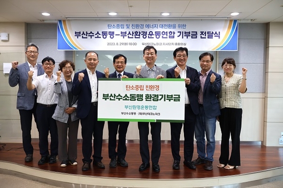 이번 기부는 수소산업 관련 사업에 대한 시민수용성을 고려해 선제적으로 에너지 대전환 환경운동에 동참하고자 부산수소동맹 회원사와 부산TP가 함께 기부에 동참했다.