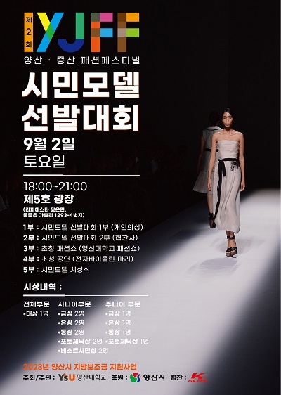 경남 양산시와 영산대학교가 오는 2일 저녁 6시부터 9시까지 증산상권 활성화의 일환으로 작년 가을 성공적으로 개최한 '양산 증산 패션 페스티벌'을 증산 라피에스타 맞은편 제5호 광장에서 연다.
