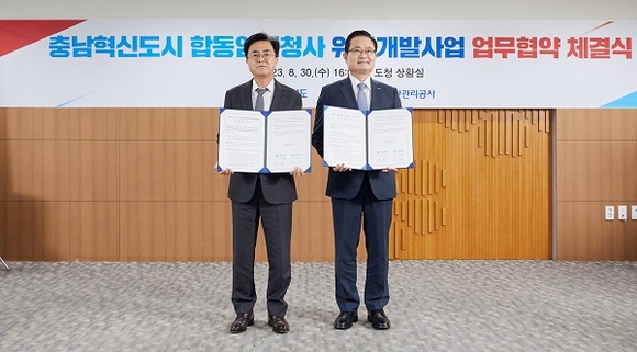 한국자산관리공사(캠코)가 30일 충청남도청에서 충남도와 충남혁신도시 내 공유재산 위탁개발 사업의 성공적 추진을 위한 ‘공유재산 위탁개발 업무협약’을 체결했다고 밝혔다.