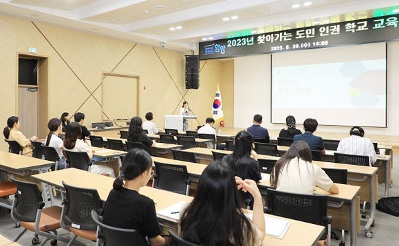 경남 함양군은 30일 군청 대회의실에서 공무원 50여명을 대상으로 '2023년 찾아가는 도민 인권학교' 교육을 가졌다.