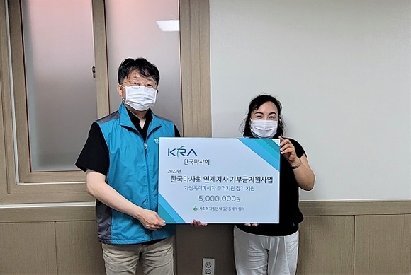 한국마사회 부산연제지사는 지난 23일 가정폭력 피해자 지원 사업을 수행하는 사회복지법인 새길공동체 누림터에 기부금 500만 원을 전달했다고 밝혔다.