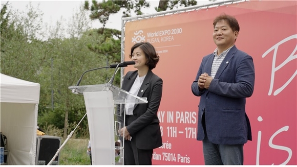 부산데이 인 파리 행사에서 개막선언.(사진=부산시의회 제공)