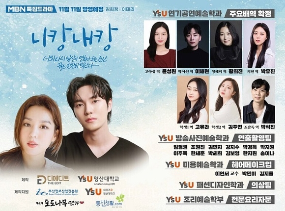 한편, 드라마 니캉내캉은 김희정‧이태리 배우가 각각 극 중 영산대 연기공연예술학과와 조리예술학부 학생으로 분해 꿈을 향해 나아가는 대학생의 모습을 연기한다. 니캉내캉은 오는 9월 중순 영산대 해운대캠퍼스를 비롯한 부산 현장촬영을 거쳐 11월 11일 오후 6시 20분 MBN에서 방영될 예정이다.