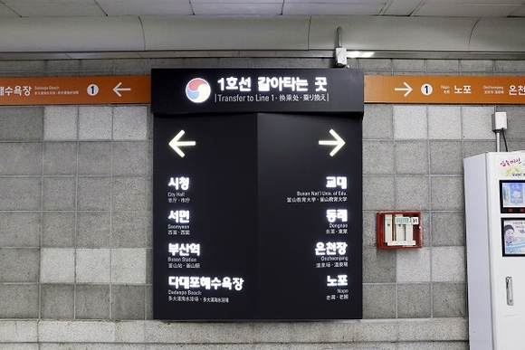 앞서 지난해 12월에 안내표지 디자인을 개선한 구간(1호선 노포행~3호선 수영행 승강장)은 환승시간이 약 40%(182초→109초) 단축된 바 있다. 이번 정비 역시 교통약자를 포함한 도시철도 승객 모두가 쉽고 편하게 이용할 수 있는 ‘유니버설디자인’을 적용해 편의성과 시인성 향상에 초점을 뒀다.