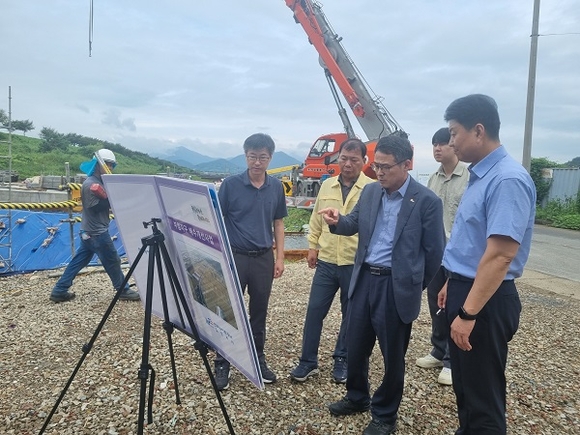 허 부시장은 먼저 삼랑진읍 용성리와 삼랑리 일원에서 시행 중인 부림지구 배수개선사업 현장을 방문했다. 부림지구 배수개선사업은 작년~2027년에 걸쳐 총사업비 236억원으로 배수장 신설 2개소(부림배수장, 거족양배수장), 유수지 확장 1개소, 배수로 4.77km를 정비하는 사업으로 한국농어촌공사 밀양지사에서 시행하고 있다. 그는 현장에서 사업추진 현황을 듣고 사업장 안전점검을 실시한 후 공사 시 안전사고가 발생하지 않도록 철저한 현장관리를 당부했다.