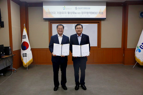 경남개발공사는 5일 공사 3층 상황실에서 경남투자경제진흥원과 양산가산·함안군북·산청한방항노화 일반산업단지 기업유치 및 지역경제 활성화를 위한 상호협력 업무협약을 체결했다고 밝혔다.