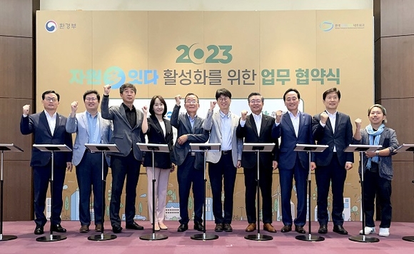 이날 협약식에는 순환경제 활성화를 위해 한국기후·환경네트워크를 비롯해 국민건강보험공단, 서울시사회복지협의회, 가톨릭관동대학교, 우리은행, 포스코와이드 등이 참석했다.