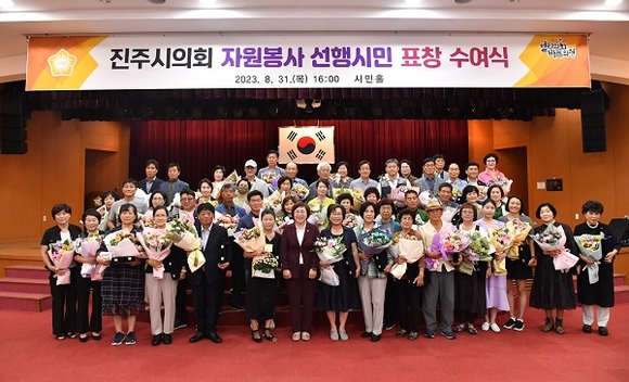 진주시의회는 지난달 31일 시청 시민홀에서 올해 상반기 자원봉사 선행시민 표창식을 갖고 의정발전과 시민의 복리증진 및 지역사회 발전에 공헌한 시민들을 격려했다.