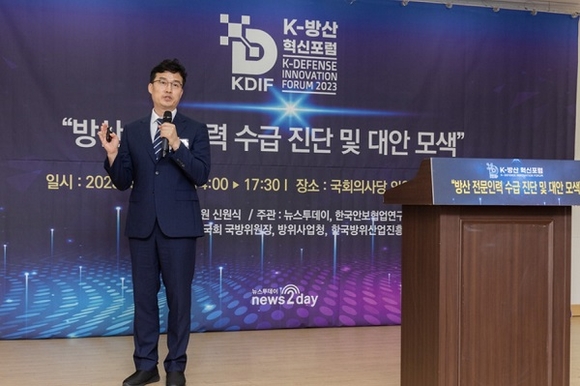 '2023 K-방산혁신포럼'은 국회 의원회관 제2소회의실에서 신원식 의원 주최로, 산학관 관계자들과 함께 '방산 전문인력 수급 진단 및 대안 모색'을 주제로 열렸다.