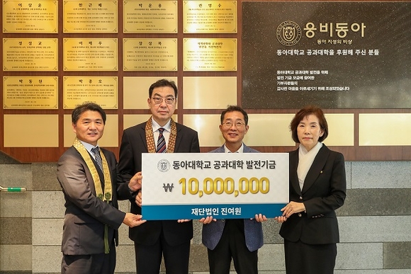 동아대학교는 재단법인 진여원이 공과대학 발전기금 1000만 원을 전달했다고 7일 밝혔다.