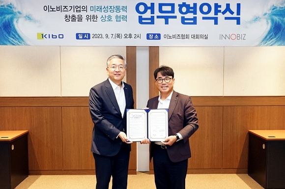 기술보증기금(기보)이 이노비즈협회와 7일 경기도 성남시 소재 협회 본사에서 ‘기술혁신형 중소기업의 미래성장동력 창출을 위한 상호협력 업무협약’을 체결하고 이노비즈기업의 투자유치를 위한 ‘INNO Wave’ IR행사를 진행했다고 밝혔다.