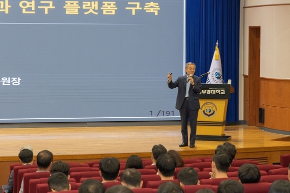 김우승 원장은 이날 '지역국립대학의 발전 방향과 노력: 지속 가능한 산학연계 교육과 연구 플랫폼 구축'을 주제로 부경대 교수, 직원 등 구성원을 대상으로 특강을 펼쳤다.