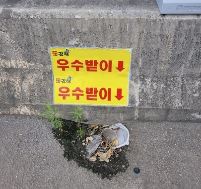 우수받이 안내표지 스티커는 최근 태풍, 집중호우 등으로 빗물에 쓸려온 이물질이 우수받이를 막아 상가, 공장 등으로 빗물이 역류해 피해가 발생하고 있으나, 우수받이 안내표지를 설치함으로써 신속하게 위치를 확인하여 이물질을 제거하는데 도움을 줄수 있을것으로 기대하고 있으며, 관내 침수위험도로 등 100개소 정도 설치할 계획이다.