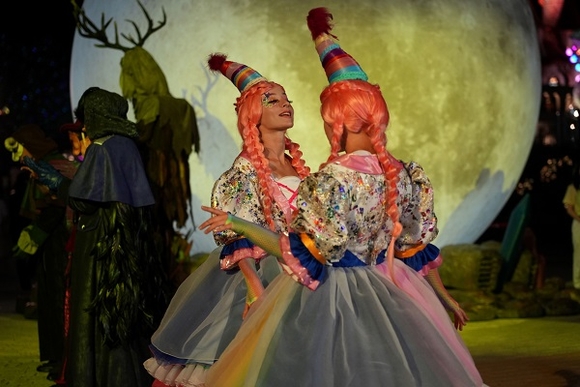 신규 공연 ‘매직 가든 파티’는 동화 속 왕국 매직포레스트에 마법의 힘을 주던 달이 붉게 변해버리면서 어둠이 찾아온다는 스토리로 공연이 펼쳐지는 야외 무대 ‘가든 스테이지’ 앞 광장에는 5M 높이의 대형 ‘달’이 설치됐다.