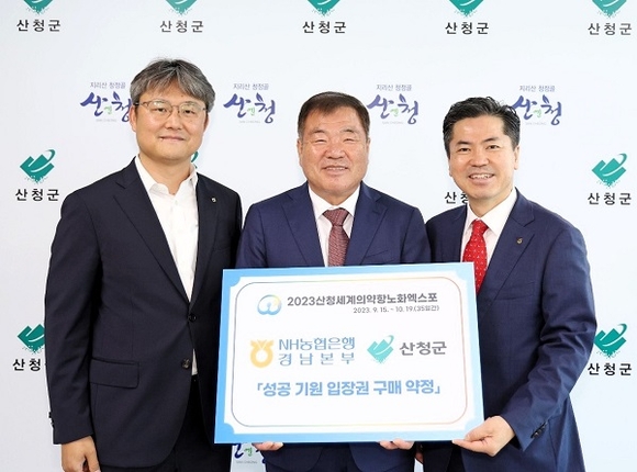 NH농협은행 경남본부는 지난 7일 산청군을 방문해 '2023산청세계전통의약항노화엑스포' 입장권 구매 약정식을 가졌다고 밝혔다.