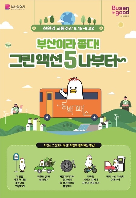 부산시가 ‘세계 차 없는 날’을 기념해 오는 18일부터 22일까지 친환경 교통주간을 운영한다고 밝혔다.