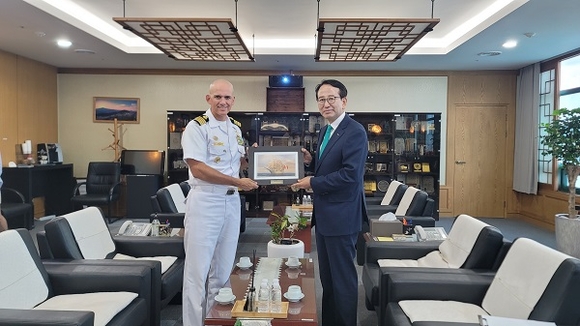 부산항만공사(BPA)가 11일 부산항을 방문한 페루 해군 훈련함 ‘BAP 유니언호’의 Jose Luis Arce 함장 일행이 BPA를 방문했다고 밝혔다. Jose 함장은 훈련함이 영도 국제크루즈터미널에 안전하게 접안할 수 있도록 지원한 BPA의 협조에 대해 감사패를 전달하고 부산항의 운영현황 및 계획을 공유받았다.