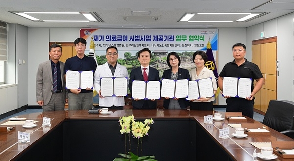 경남 진주시는 13일 시청에서 엠마우스요양병원, 나누리노인통합지원센터, 한우리노인복지센터, 동진택시, 일진교통 등 재가 의료급여 시범사업 추진을 위한 업무협약을 체결했다.