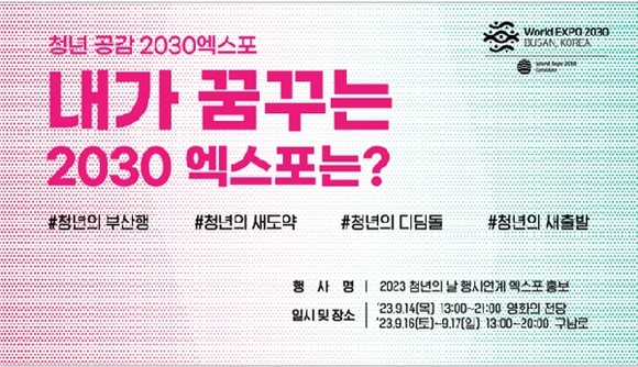부산시가 올해 청년의 날 행사와 연계해 오는 14일 영화의 전당 야외광장에서, 오는 16일부터 17일까지 이틀간 해운대 구남로에서 2030부산세계박람회 홍보부스를 운영한다고 밝혔다.