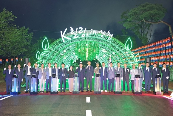 이날 불을 밝힌 힐링터널, 힐링약초정원, 축등, 게이트, 포토존 등은 10월 19일까지 다양한 불빛으로 행사장을 화려하게 수놓을 예정이다.