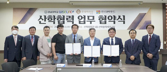 경남대학교 LINC3.0사업단은 지난 13일 오전 11시 산학협력관 5층 산학협력세미나실에서 롯데백화점 마산점, 대륙푸드와 산학연협력 업무 협약을 체결했다.