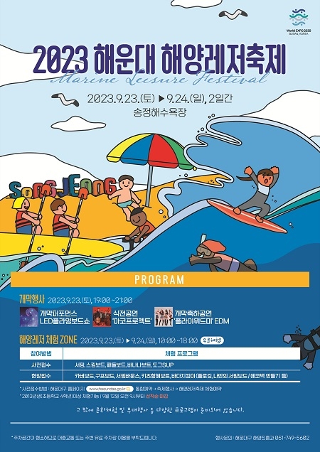 부산 해운대구가 오는 23일부터 24일까지 양일간 대한민국 서핑 메카 송정해수욕장에서 ‘2023년 해운대 해양레저축제’를 개최한다고 밝혔다.