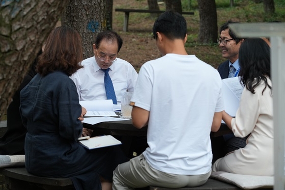 20일 하윤수 교육감이 영도지구 고등학교를 방문해 현안 사항을 논의하고 있다.(사진=부산시교육청 제공)