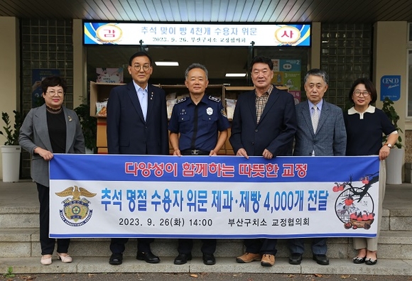부산구치소가 26일 교정협의회로부터 추석을 맞이해 다양성이 함께하는 따뜻한 교정 실천과 수용자들의 안정적인 수용 생활을 위한 빵 및 제과류 4000개를 전달받았다고 밝혔다.