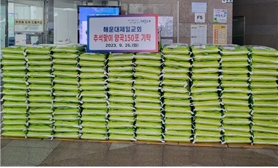 부산 해운대구는 해운대제일교회가 지난 26일 추석맞이 저소득 가정을 위해 햅쌀 150포를 기탁했다고 밝혔다.
