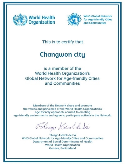 경남 창원시는 세계보건기구(WHO)로부터 고령친화도시 국제네크워크(GNAFCC) 고령친화도시 재인증(2기)에 성공해 2027년까지 자격을 유지한다고 27일 밝혔다.