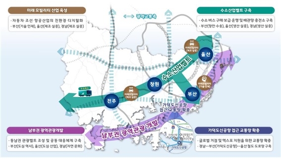 ‘1시간 생활권 형성 및 산업지원을 위한 광역철도망 구축’을 위해 부산~양산~울산 광역철도 건설, 울산~부산~창원~진주를 잇는 철도교통 기반시설 도입, KTX 경부고속선 울산지선 신설 등을 추진한다.