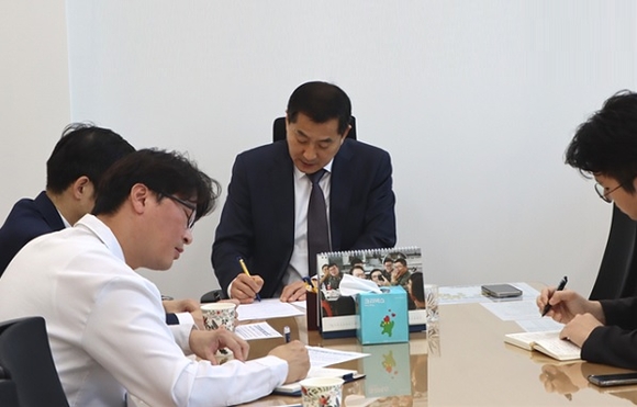 국민의힘 정책위의장인 박대출 국회의원(경남 진주갑)이 11일 농식품부와 면담을 갖고, 집중호우로 인한 경남 단감 농가들의 낙과 등 피해에 대해 정부 차원의 지원책 마련을 주문했다.