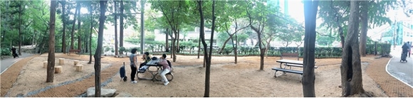 부산 대신공원 입구 유휴지가 쾌적한 숲속 쉼터로 탈바꿈했다.