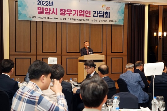 경남 밀양시는 창원 그랜드머큐어앰버서더 호텔에서 기업 유치를 위한 '2023 밀양시 향우기업인 간담회'를 가졌다고 12일 밝혔다.